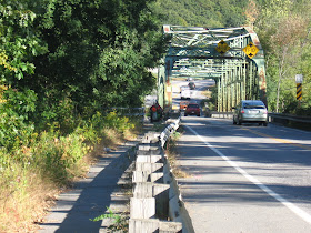 You see my "Build New Bridge" sign to the right of Robert's head that is taped to the right side I-beam. The sign is too flashy for my camera to pick up what is written with the sun angle. Notice how narrow the bridge is without a safety break down lane? There are tons of bicyclist who also hazards this bridge without safety breakdown lanes. Can you imagine a situation with Robert needing to drive his wheel chair in the road across this extremely dangerous bridge?